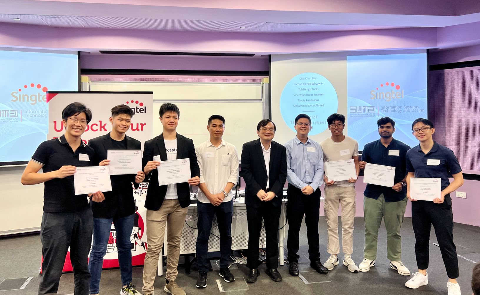 Picture of team Hungrybees with our award, SUTD, May 2023